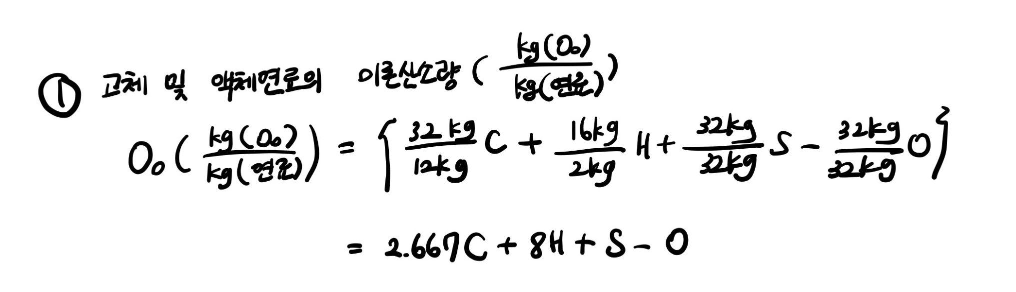 가연성분인 C,H,S 이 연소할 때 필요로 하는 산소량의 합