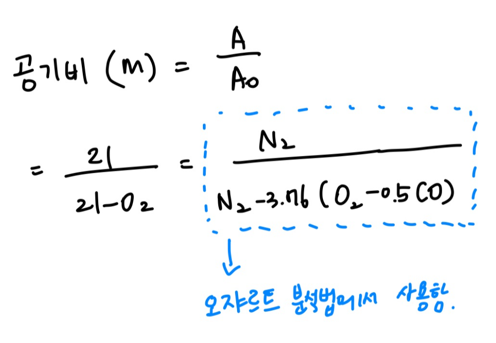실제공기(A) = 이론공기(Ao) + 과잉공기
