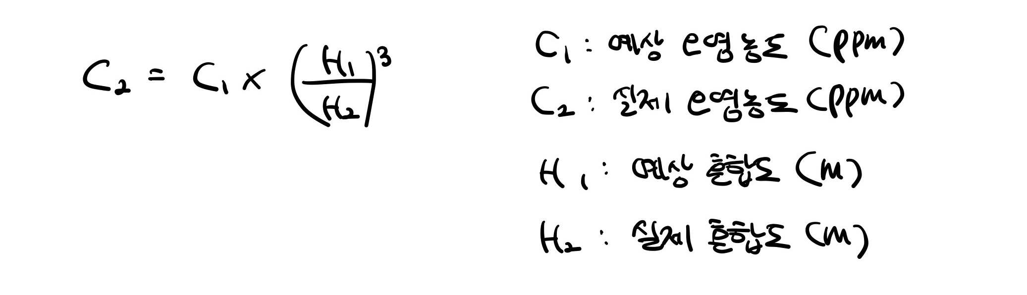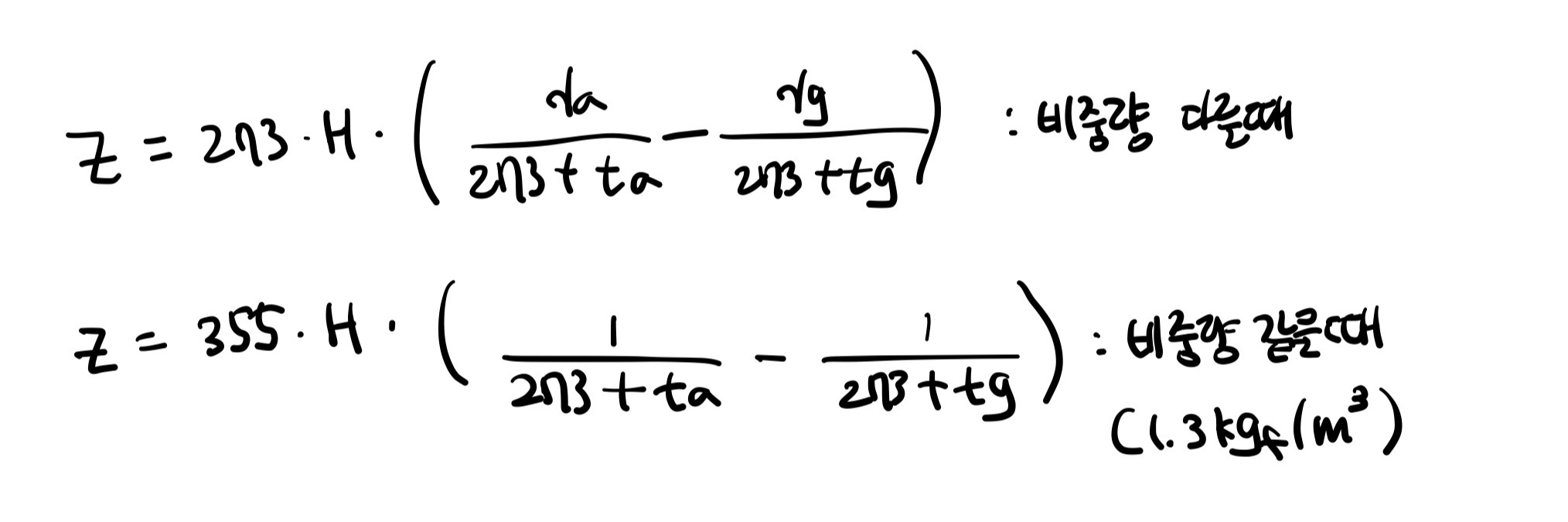 정의 : 실제 굴뚝높이에 연기의 상승높이를 더한 높이