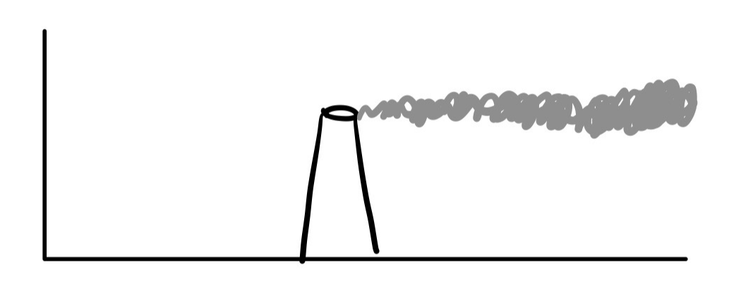 정의 : 굴뚝 아래로 오염물질이 휘날리며 굴뚝 밑 부분에서 오염물질의 농도가 높아지는 현상